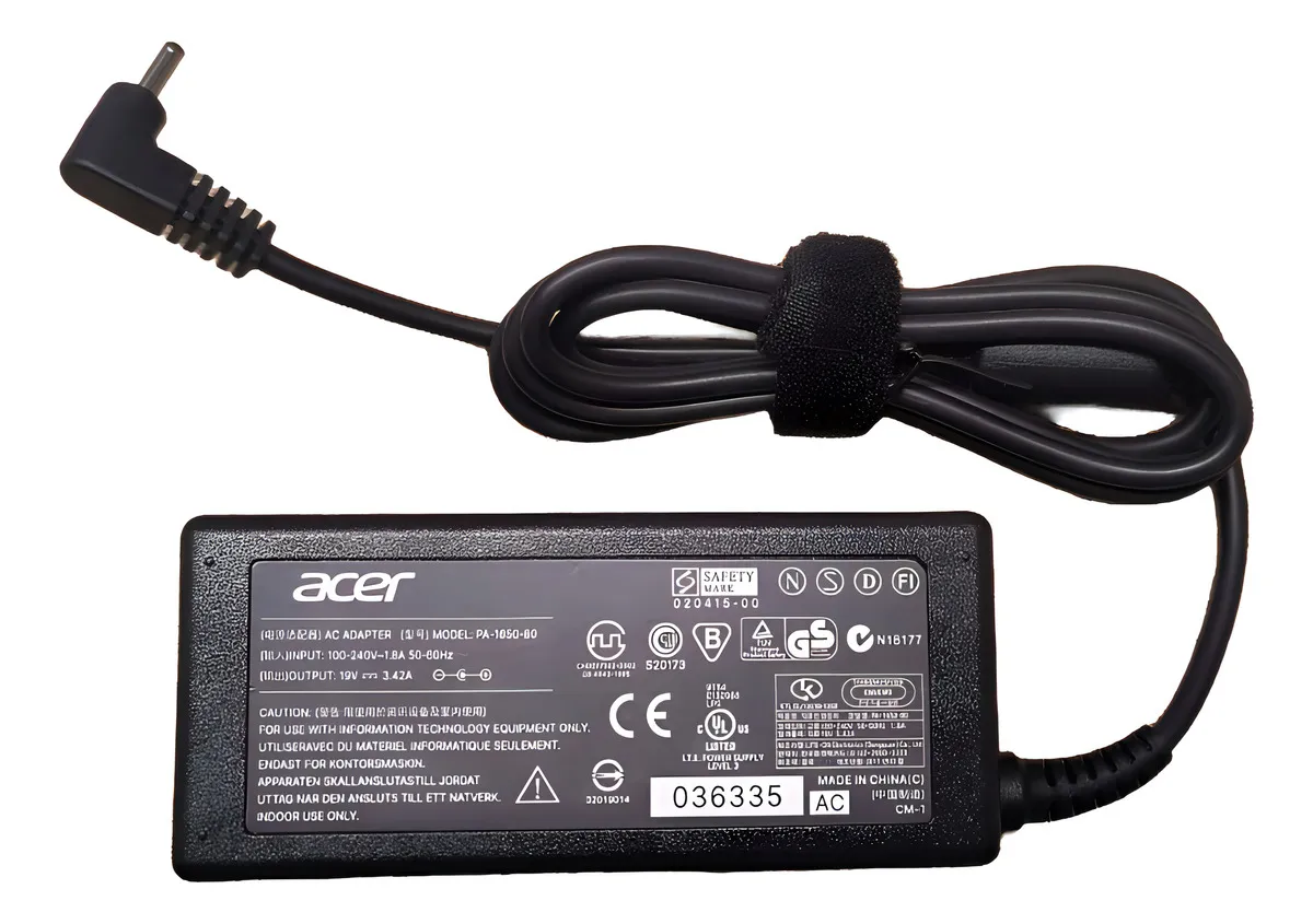 Cargador Acer 65w 19.5v 3.42a Plug 3 Mm (od) Y 1.3 Mm (id) Negro